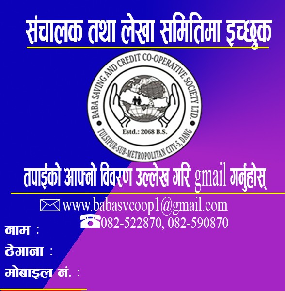 "Baba Savings and Credit Cooperative Ltd." was established through the initiative of Mr. Nirmal K...